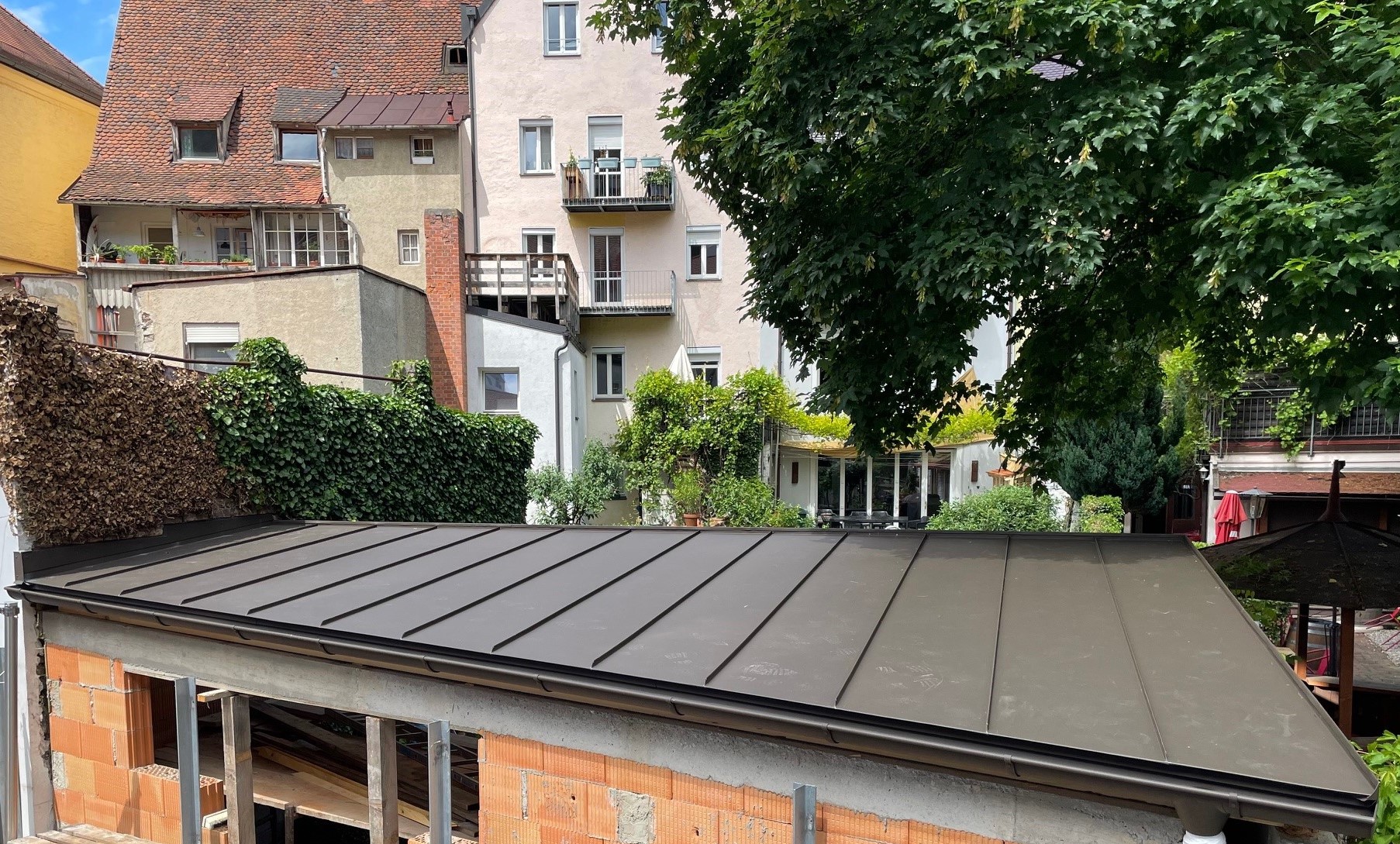 Auch Dacheindeckungen im Stehfalzsystem, mit Trapezblechen oder mit Metall-Dachplatten werden von uns ausgeführt.